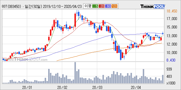 GST은 2019년 매출액 1682억원과 영업이익 219억원을 기록했다. 전년대비 매출은 29.6%, 영업이익은 110.5% 각각 상승했다. 이 회사의 매출액 증감률과 영업이익 증감률은 각각 코스닥 상위 18%, 상위 17%에 해당된다.