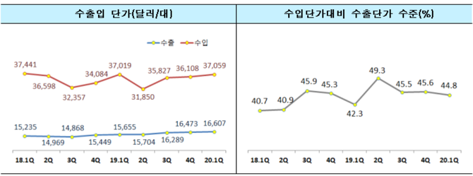 승용차 수출 평균단가는 1만6607달러, 수입 평균단가는 3만7059달러로 전년 동기 대비 각각 6.1%, 0.1% 증가했다.