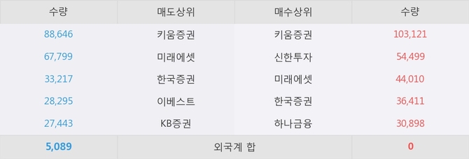 거래원 동향은 미래에셋, 하나금융 등이 매수 상위 목록에 나타나고 있다.