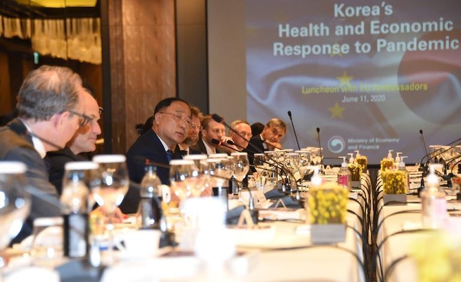 홍 부총리는 한국의 코로나19 방역대책과 경제정책에 대해 강연하고, 주한 EU 대사들과 폭넓은 의견을 교환했다.
