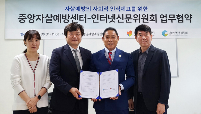 (조세금융신문=홍채린 기자) 인터넷신문위원회와 중앙자살예방센터는 자살 예방의 사회적 인식을 제고하기 위한 업무협약을 지난 달 30일 체결했다고 2일 밝혔다.