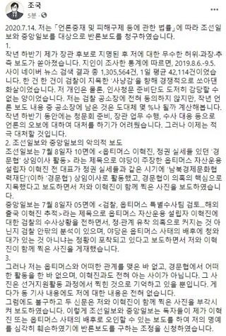 이어 “그럼에도 불구하고 조선일보와 중앙일보는 저와 이혁진이 함께 찍은 사진을 부각시켜 보도했다”며 “독자들이 제가 이혁진 또는 옵티머스 사태 배후로 오인할 수 있는 보도를 하여 저의 명예를 심각히 훼손하였다”라고 말했다.