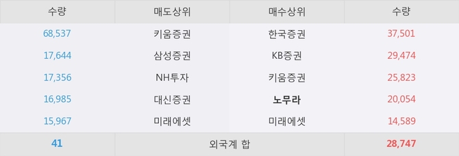 거래원 동향은 노무라, 미래에셋이 매수 상위 목록에 나타나고 있다.