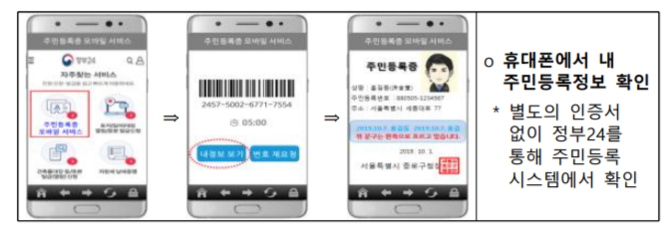 모바일 서비스에는 생년월일, 사진, 주소, 발급기관, 일자 등을 주민등록시스템을 통해 확인할 수 있어 언제 어디서나 스마트폰으로 정보 확인이 가능하다.