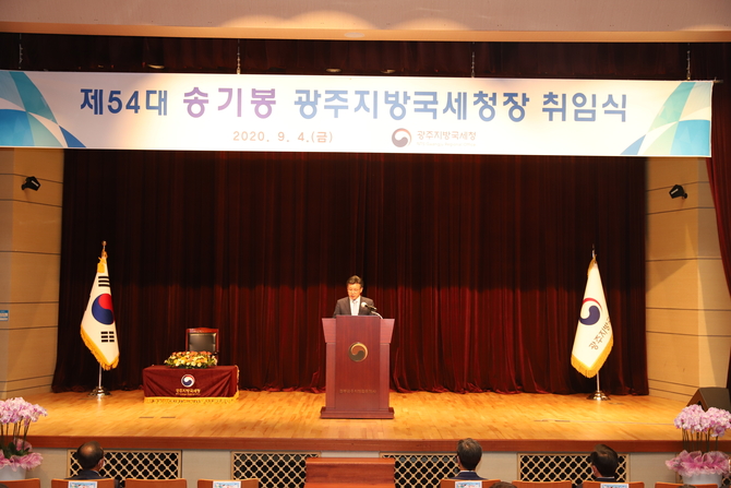 송 광주청장은 4일 광주청사에서 취임식을 열고 “한국판 뉴딜 기업에 맞춤형 세무컨설팅을 제공하고, 일자리 창출기업에 대한 선제적 세정지원에 앞장서겠다”고 말했다.