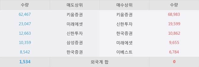 이 시각 주요 거래원은 미래에셋, 키움증권, 신한투자 등이 매수 상위 창구에 자리하고 있다.
