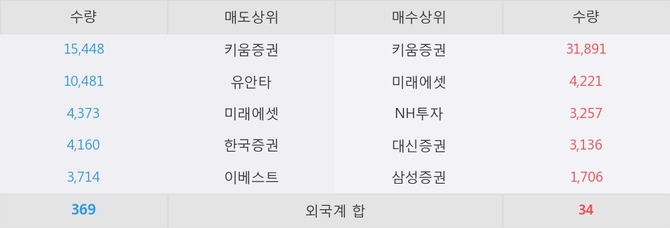 거래원 동향은 미래에셋, NH투자, 삼성증권 등이 매수 상위 목록에 나타나고 있다.