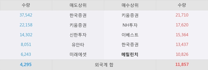 거래원 동향은 메릴린치, NH투자가 매수 상위 목록에 나타나고 있다.
