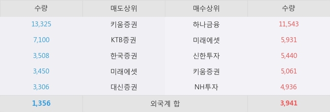 거래원 동향은 하나금융, 미래에셋, NH투자 등이 매수 상위 목록에 나타나고 있다.