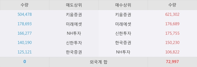 거래원 동향은 미래에셋, NH투자 등이 매수 상위 목록에 나타나고 있다.