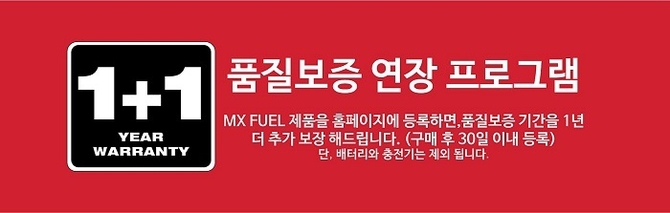 마지막으로 밀워키 코리아가 운영하고 있는 제품 품질 보증기간 연장 프로그램은 MX FUEL 제품을 밀워키 코리아 홈페이지에 등록 시 보증기간을 기본 1년에 1년을 추가해 최대 2년까지 보장해준다.