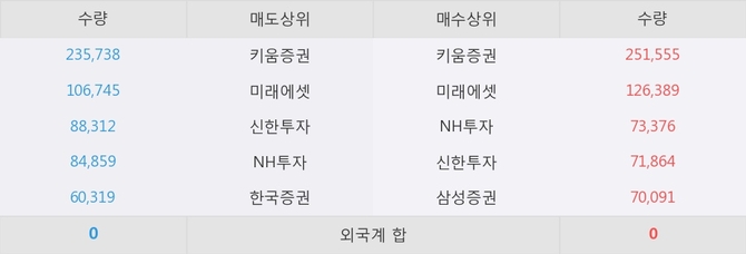 거래원 동향은 미래에셋, NH투자, 삼성증권 등이 매수 상위 목록에 나타나고 있다.