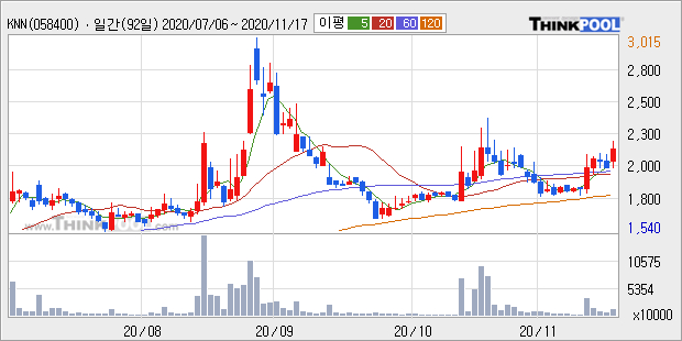 KNN의 2019년 매출액은 711억으로 전년대비 10.9% 상승했고, 영업이익은 74억으로 전년대비 -4.6% 하락했다. 이 회사의 매출액 증감률과 영업이익 증감률은 각각 코스닥 상위 38%, 하위 48%에 해당된다.