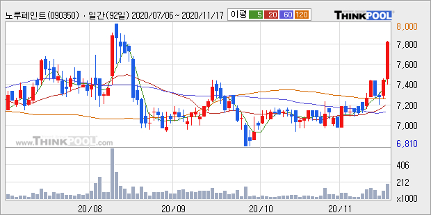 추세선으로 보면 현재 단기·중기 이평선이 정배열 상태로 전형적인 상승세를 보이고 있다. 최근 이 종목의 차트에서 삼선전환도(양전환) 등의 특이사항이 발생했다.