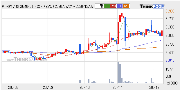 한국컴퓨터의 2019년 매출액은 1104억으로 전년대비 -3.3% 하락했고, 영업이익은 72억으로 흑자전환했다. 이 회사의 매출액 증감률과 영업이익 증감률은 각각 코스닥 하위 33%, 상위 8%에 해당된다.