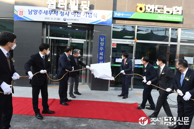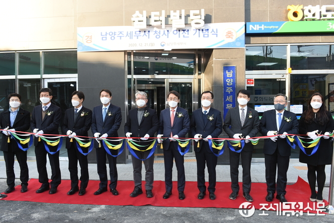 (조세금융신문=채흥기 기자) 지난 4월 구리세무서 신설로 12월 14일 남양주시 화도읍 묵현리 소재 신축건물인 쉼터빌딩으로 이전한 남양주세무서(서장 우원훈)가 21일 오후 이전 청사 기념식을 가졌다.
