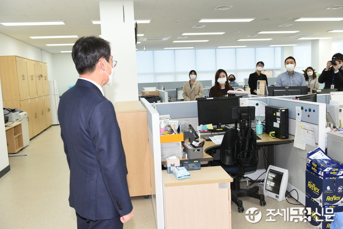 이준오 청장은 기념식 후 관계자들과 기념촬영 후 각과를 돌아보며 직원들을 격려했다.
