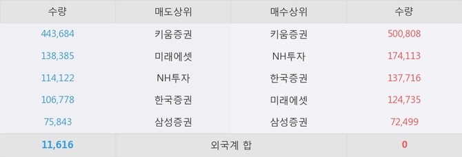 거래원 동향은 NH투자, 미래에셋, 삼성증권 등이 매수 상위 목록에 나타나고 있다.