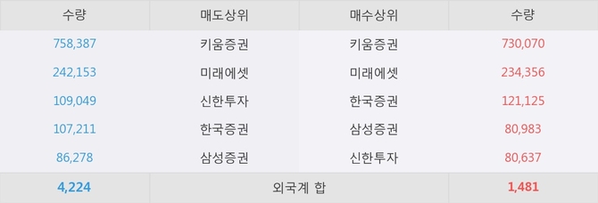 거래원 동향은 미래에셋, 삼성증권 등이 매수 상위 목록에 나타나고 있다.