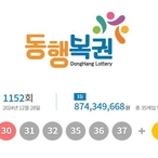 1152회 로또 1등 '30, 31, 32, 35, 36, 37'...2등 보너스번호 '5'