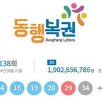 1138회 로또 1등 '14, 16, 19, 20, 29, 34'...2등 보너스번호 '35'