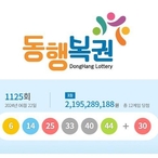 1125회 로또 1등 '6, 14, 25, 33, 40, 44'...2등 보너스번호 '30'