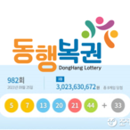 982회 로또 1등 당첨번호 '5, 7, 13, 20, 21, 44'...당첨자 8명 각각 30억2363만원씩 수령
