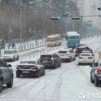 [포토뉴스] 갑자기 내린 눈, "버스는 미끄러지고, 경찰은 밀고"
