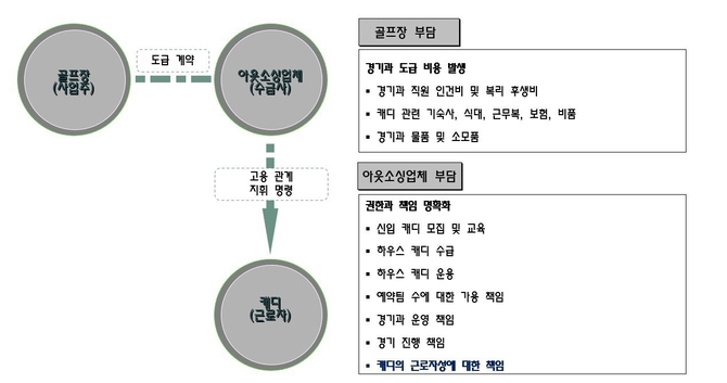 경기과 위탁은 캐디의 근로자성으로 인해 골프장운영자가 가질 수 있는 위험요소를 없애고, 그 책임을 아웃소싱 업체로 전가하는 방법으로 현실적인 고려 대상이 될 수밖에 없다.