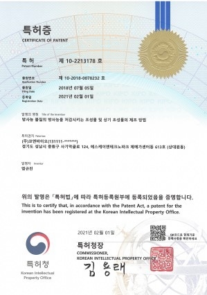 (조세금융신문=구재회 기자) ㈜코엔바이오(대표 염규진)가 최근 특허청으로부터 토종 미생물을 활용하여 방사능 오염물질(Cs137)의 반감기를 획기적으로 감축하는 원천기술과 관련한 특허를 세계 최초로 취득했다.
