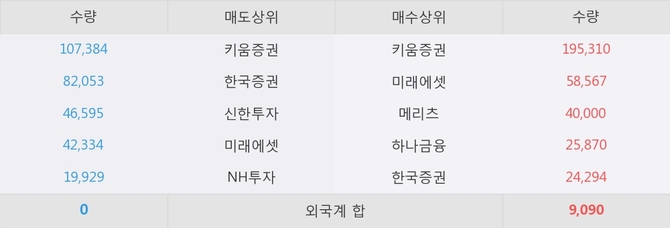거래원 동향은 미래에셋, 메리츠, 하나금융 등이 매수 상위 목록에 나타나고 있다.