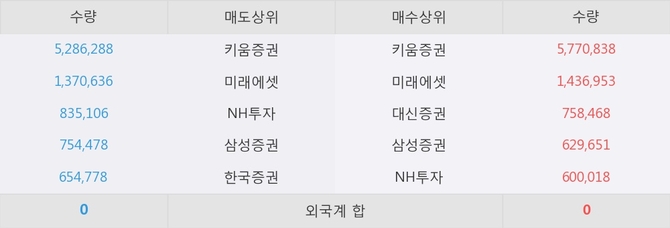 거래원 동향은 미래에셋, 삼성증권, NH투자 등이 매수 상위 목록에 나타나고 있다.
