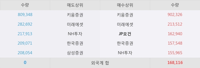 거래원 동향은 JP모건, 미래에셋, NH투자 등이 매수 상위 목록에 나타나고 있다.