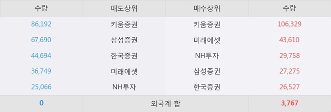 거래원 동향은 미래에셋, NH투자, 삼성증권 등이 매수 상위 목록에 나타나고 있다.