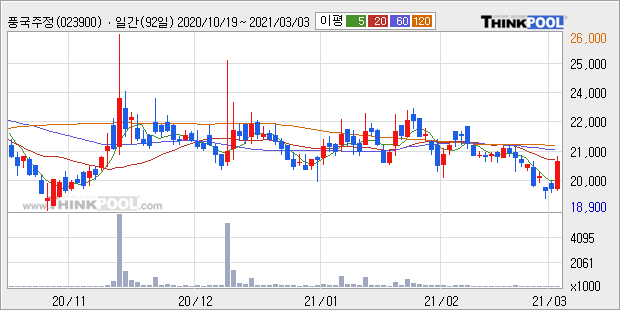 풍국주정은 2019년 매출액 1214억원과 영업이익 105억원을 기록했다. 전년대비 매출은 0.8% 상승했고, 영업이익은 -21.6% 하락했다. 이 회사의 매출액 증감률과 영업이익 증감률은 각각 코스닥 하위 42%, 하위 39%에 해당된다.