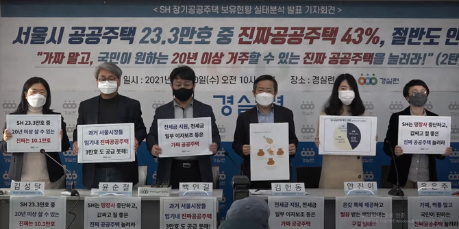 경실련은 10일 경실련 강당에서 열린 ‘서울시 내에 짓는 SH 장기공공주택 보유현황 실태분석 발표’ 기자회견에서 “서울시 공공주택 22만3000호 중에 진짜는 10만1000호로 전체의 43% 밖에 안된다”고 밝혔다.
