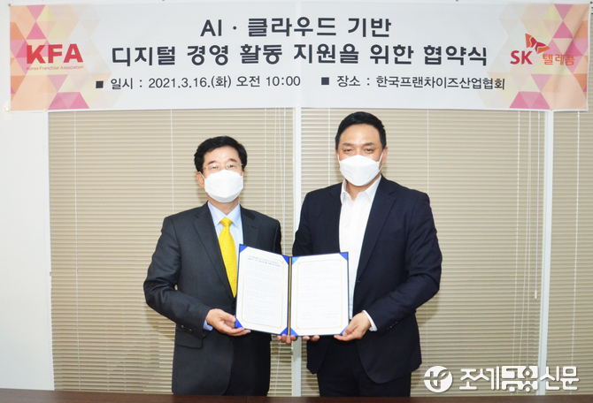 (조세금융신문=이지한 기자) 한국프랜차이즈산업협회(회장 정현식·이하 협회)와 SK텔레콤(대표이사 박정호·이하 SKT)이 업계의 디지털 경영 모델 확산을 통해 프랜차이즈 산업의 코로나19 위기 극복과 안정적인 성장을 지원한다.