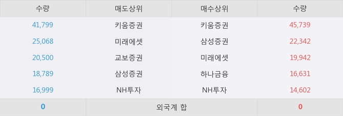 거래원 동향은 삼성증권, 미래에셋, 하나금융 등이 매수 상위 목록에 나타나고 있다.