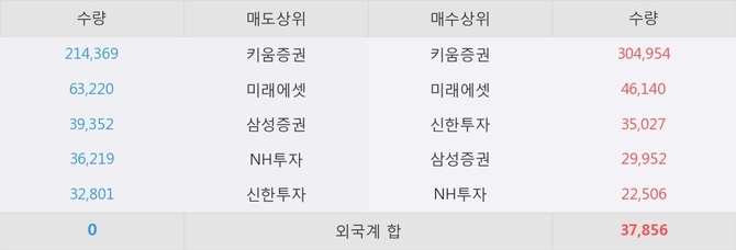 거래원 동향은 미래에셋, 삼성증권, NH투자 등이 매수 상위 목록에 나타나고 있다.