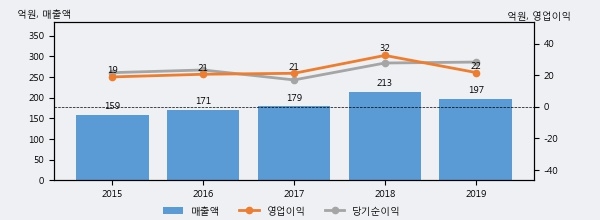 옵티시스는 2019년 매출액 197억원과 영업이익 22억원을 기록했다. 전년대비 매출은 -7.5%, 영업이익은 -33.2% 각각 하락했다. 이 회사의 매출액 증감률과 영업이익 증감률은 각각 코스닥 하위 26%, 하위 34%에 해당된다.