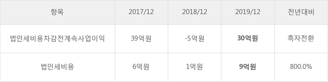 [표]동양에스텍 법인세 납부 추이