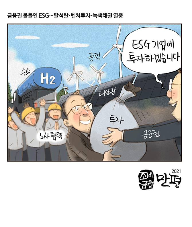 [조세금융만평] ESG에 집중하는 금융권…탈석탄·벤처투자·녹색채권 열풍