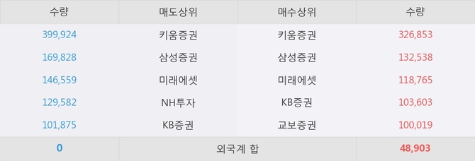 거래원 동향은 삼성증권, 미래에셋, NH투자 등이 매도 상위 목록에 나타나고 있다.