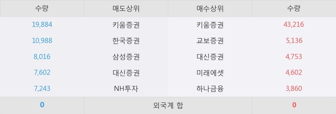 아직까지 외국계 증권사 창구를 통한 매매는 발생하지 않고 있다. 그리고 이 시간 교보증권이 매수창구상위에 올라있는 종목은 이 종목 이외에도 SK하이닉스, 제노레이 등이 있다.