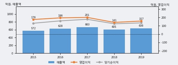 삼양옵틱스의 2019년 매출액은 636억으로 전년대비 5.2% 상승했고, 영업이익 또한 157억으로 전년대비 11.2% 상승했다. 이 회사의 매출액 증감률과 영업이익 증감률은 각각 코스닥 하위 50%, 상위 44%에 해당된다.