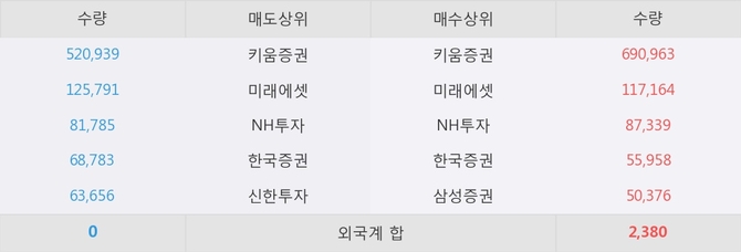 거래원 동향은 미래에셋, NH투자, 삼성증권 등이 매수 상위 목록에 나타나고 있다.