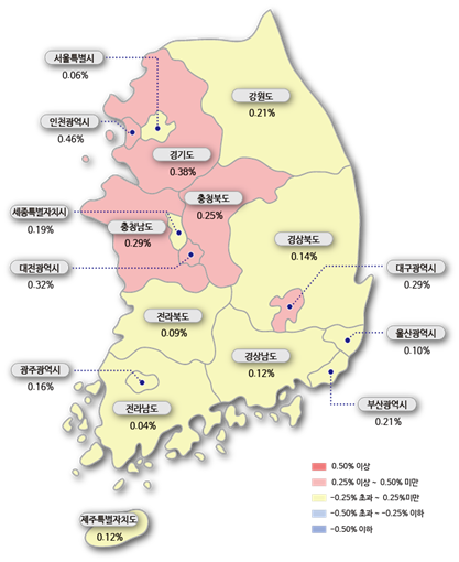 세종시도 아파트값 상승률이 0.16%에서 0.19%로 확대됐다. 세종시는 높은 매물호가로 매도·매수자 간 희망가격 격차가 있는 가운데, 행복도시 내 보람·도담동 위주로 가격이 상승하며 상승폭이 확대됐다.