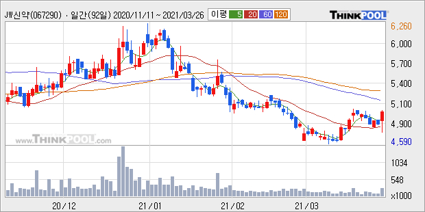 JW신약은 2019년 매출액 1025억원과 영업이익 12억원을 기록했다. 전년대비 매출은 11.7%, 영업이익은 98.3% 각각 상승했다. 이 회사의 매출액 증감률과 영업이익 증감률은 각각 코스닥 상위 36%, 상위 19%에 해당된다.