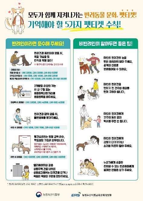 반려동물 예절(펫티켓)과 관련 제도를 3∼4월 중 집중적으로 홍보한다고 농림축산식품부가 28일 밝혔다.