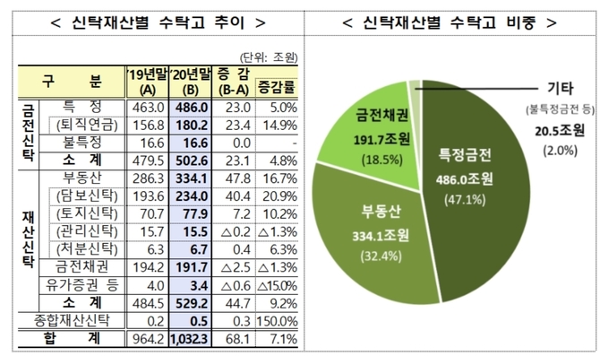 금융사가 수수료를 받고 자산을 대신 관리·운용해주는 신탁 규모가 지난해 1천조원을 넘어섰다.